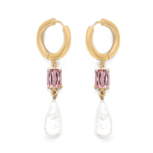 LOA HOOP PINK QUARTZ & PEARL